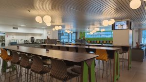 学生可以在校内餐厅就餐,餐饮费已包含在学费中。餐厅位于教学中心楼,工作日提供午餐和晚餐,以自助餐形式供应丰富多样的菜品、沙拉、甜点,以及各类冷热饮品。